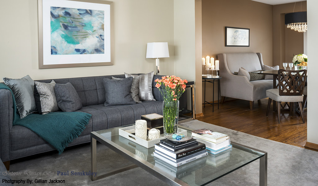 Keeping the major items in your living room in the same color range not only gives you a simply sophisticated look, it also gives you the opportunity to change you look frequently. Dress it up with a statement piece or keep it simple.